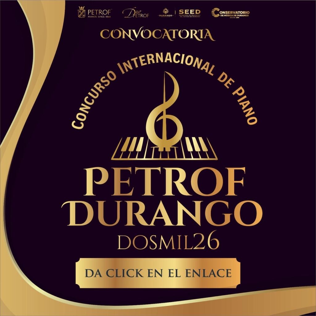 Convoca a pianistas mexicanos y extranjeros de hasta 30 años a participar en este importante certamen que se llevará a cabo de forma presencial del 17 al 25 de mayo de 2026 en el Conservatorio de Música de Durango.